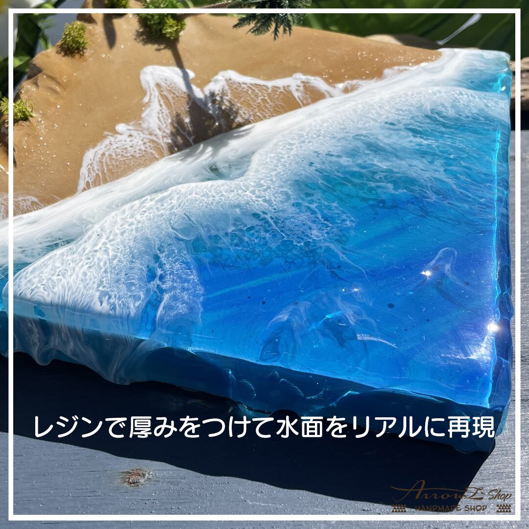 ・立体感と海、水の動きのあるレジンアート