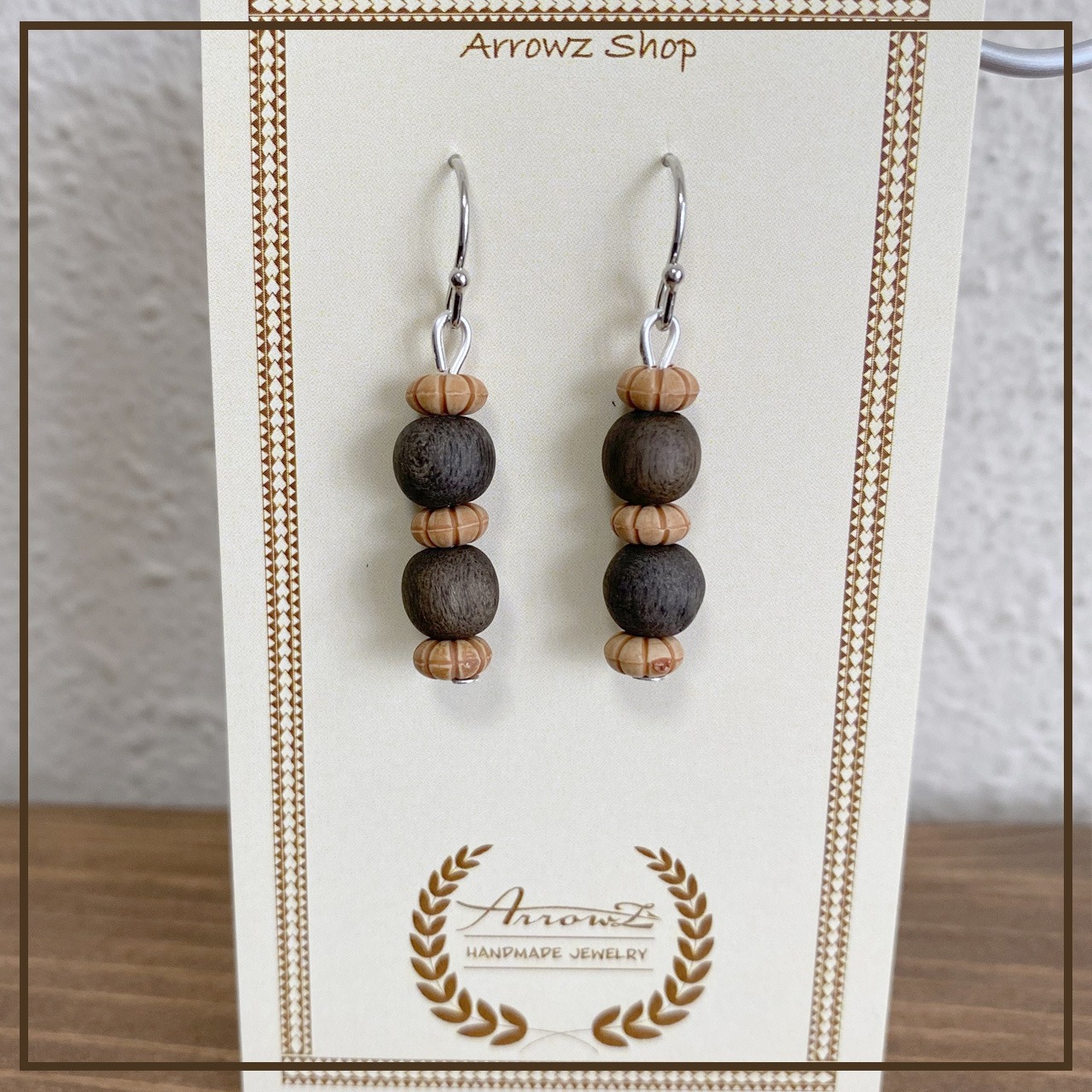 グレーウッドとかぼちゃビーズのアジアンテイストのハンドメイドシルバーピアスに仕上げました