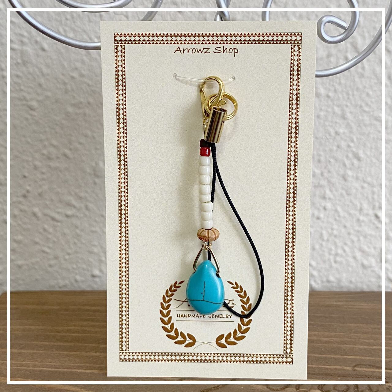 こちらはティアドロップのターコイズブルーが可愛いストラップです