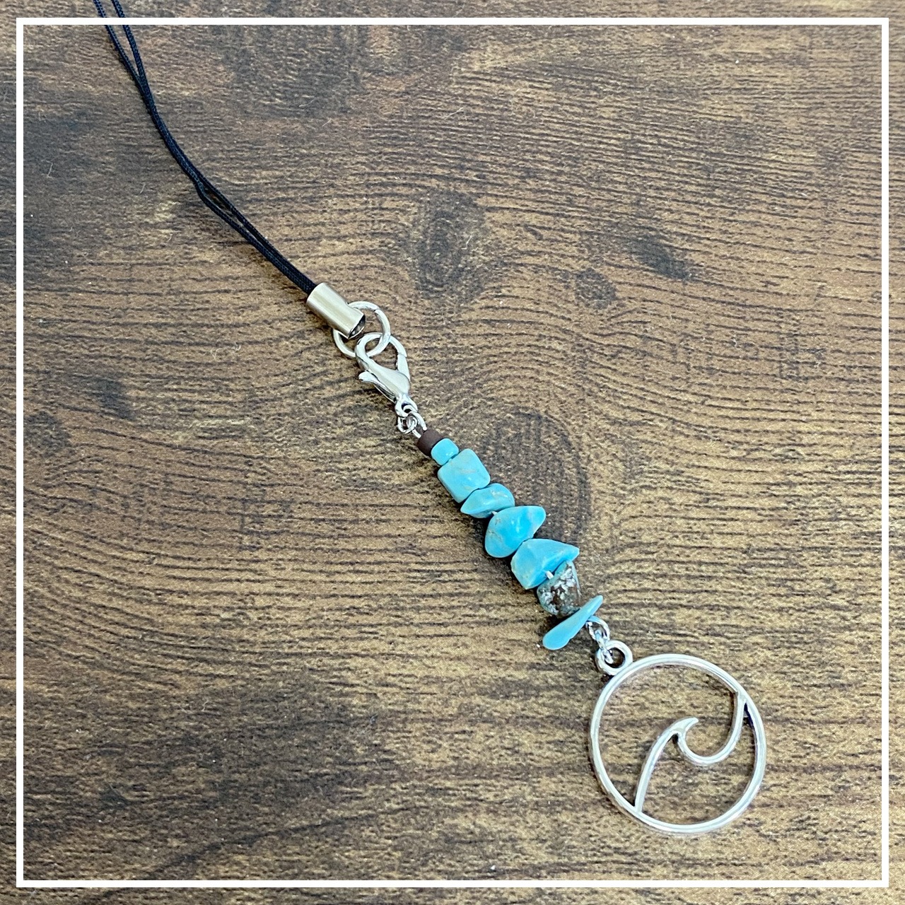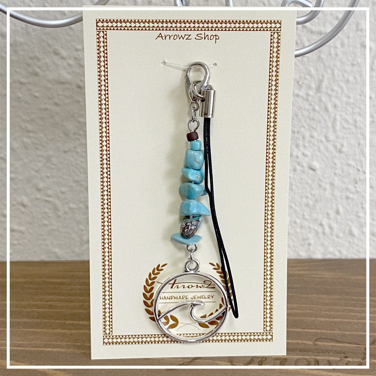 【hsts01】ターコイズと波のチャームのストラップ・紐付きストラップシルバー