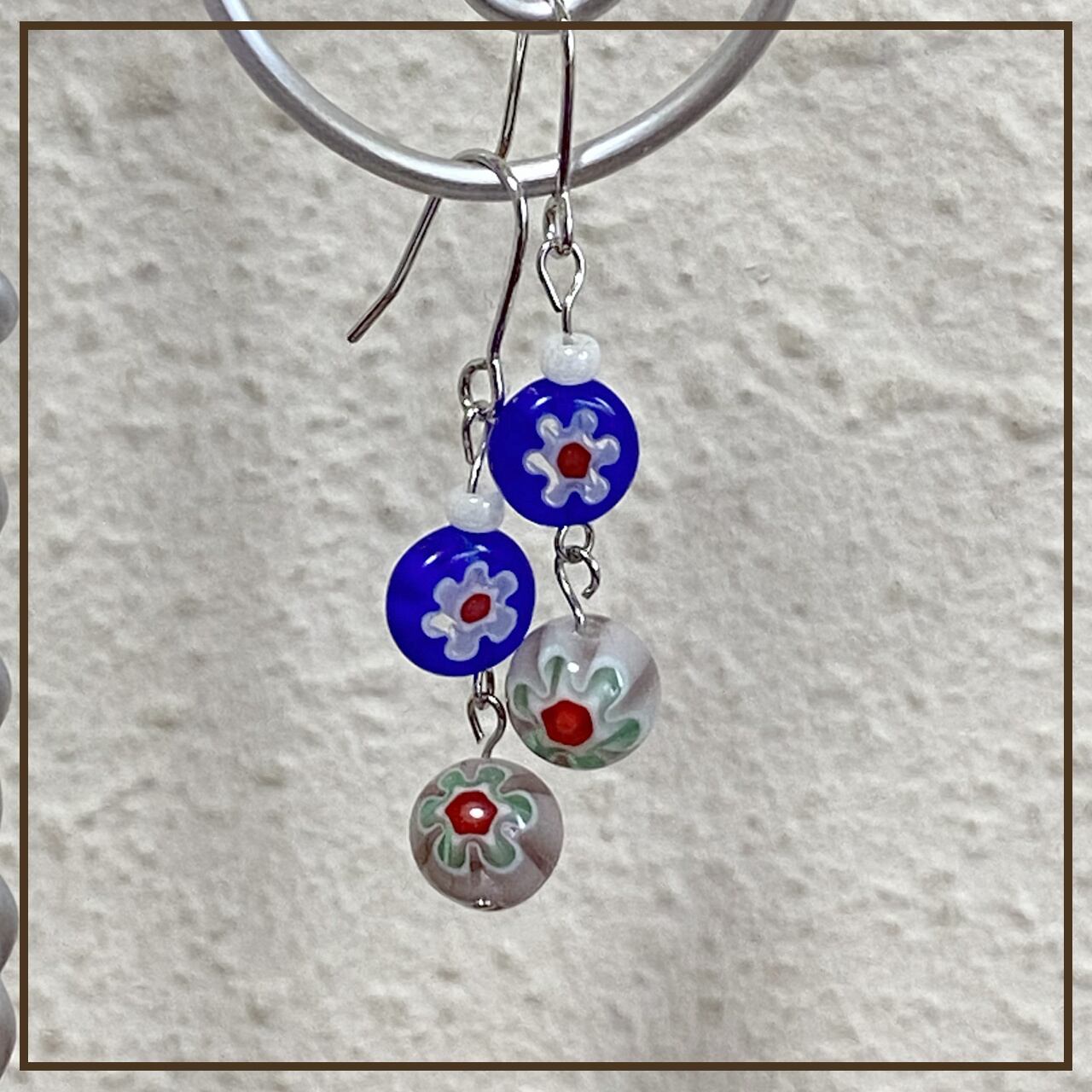 こちらは花模様のガラスビーズのシルバーピアスです