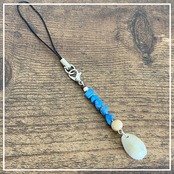 こちらはシェルと青みのあるターコイズが可愛いストラップです