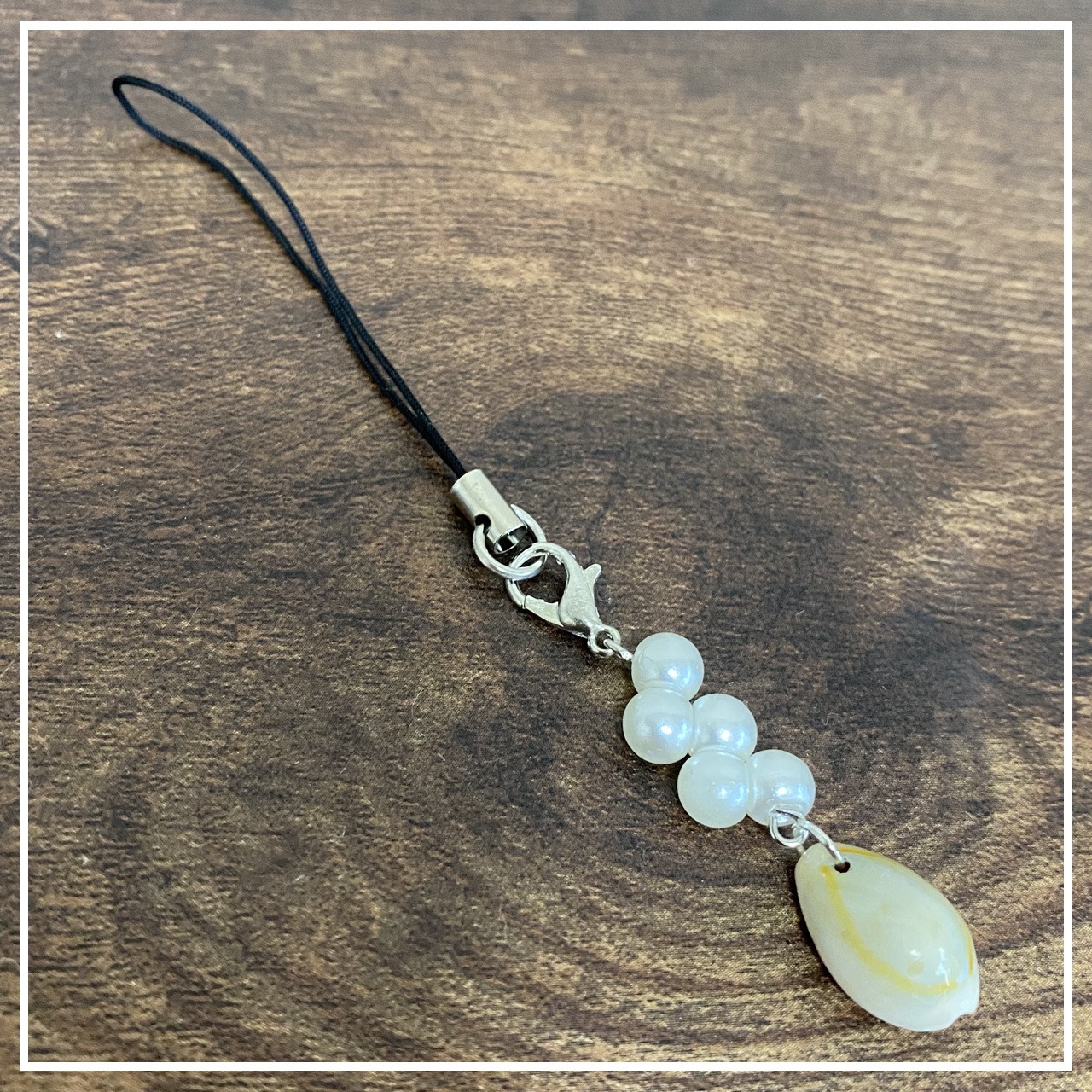 【hsts24】ドロップパールビーズとシェルのストラップ・紐付きストラップシルバー