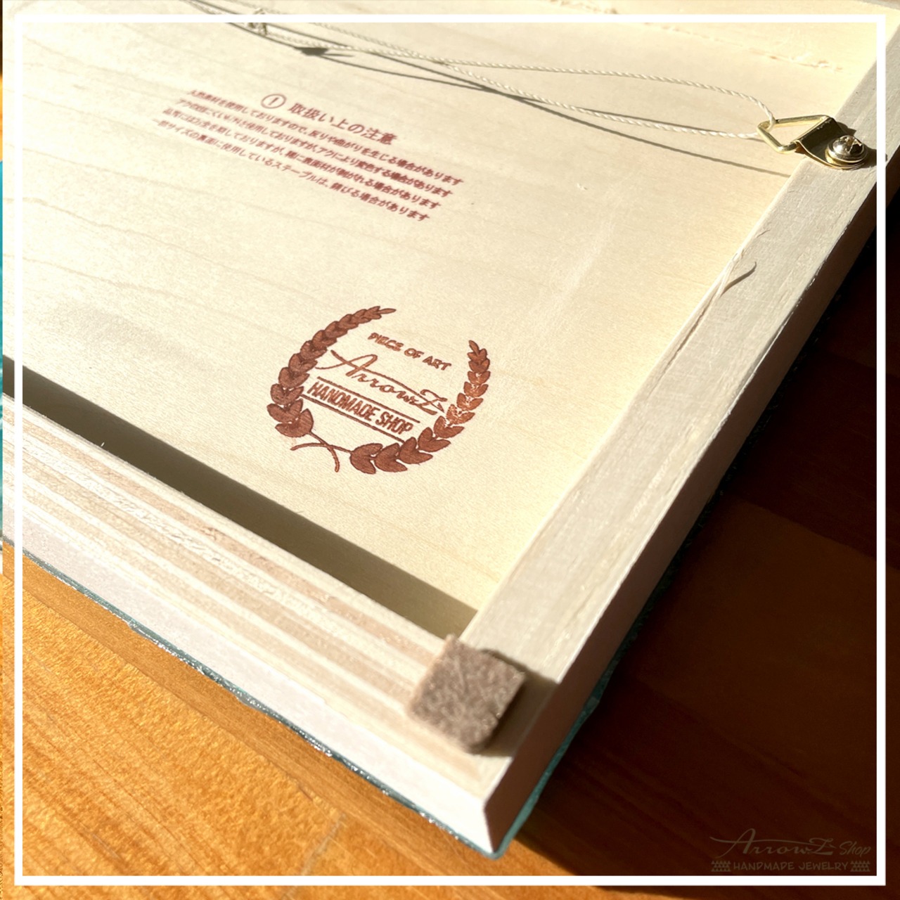 ▼アートパネル裏側には、フックと紐をおつけしておりますので壁等に引っ掛けて頂くと、簡単に飾れます