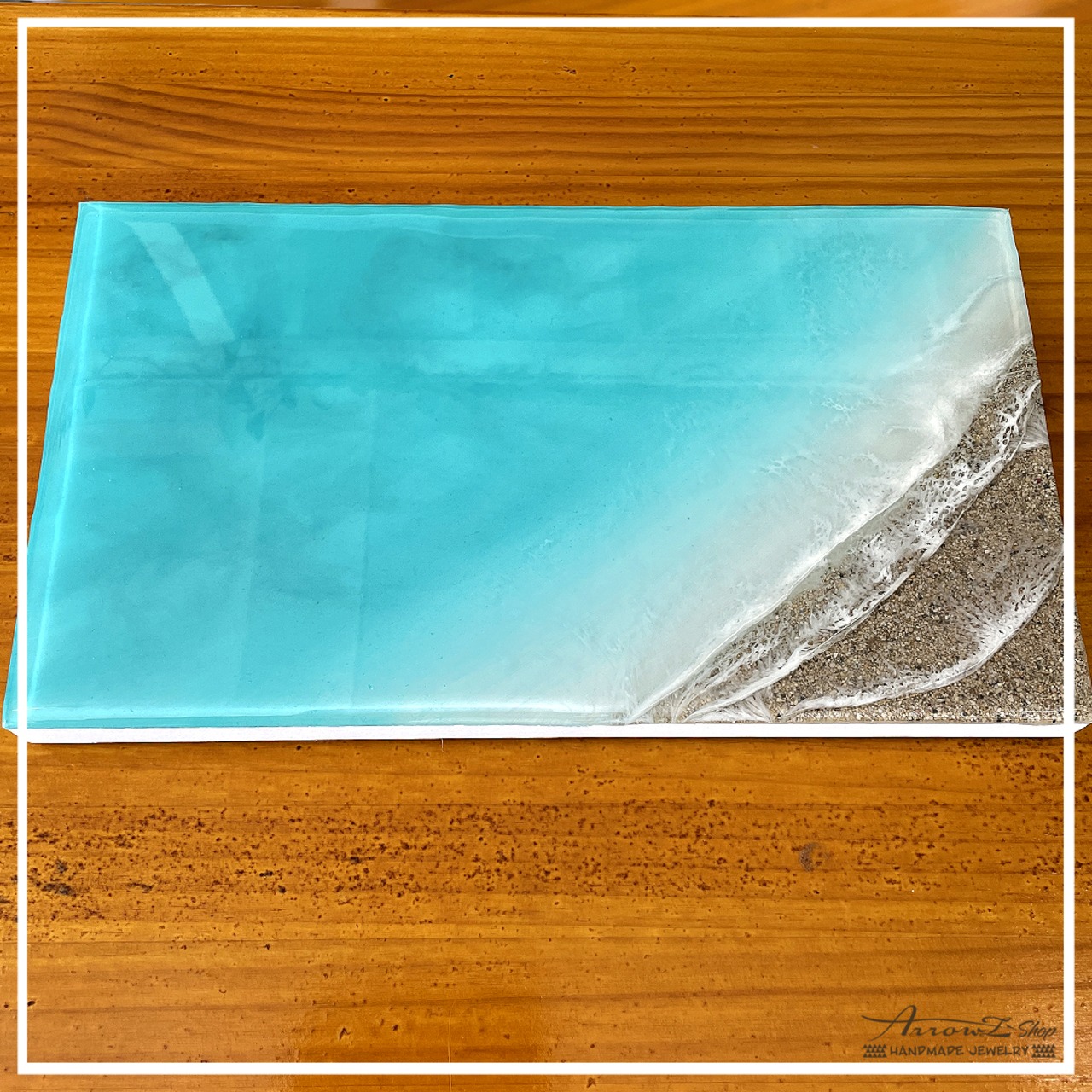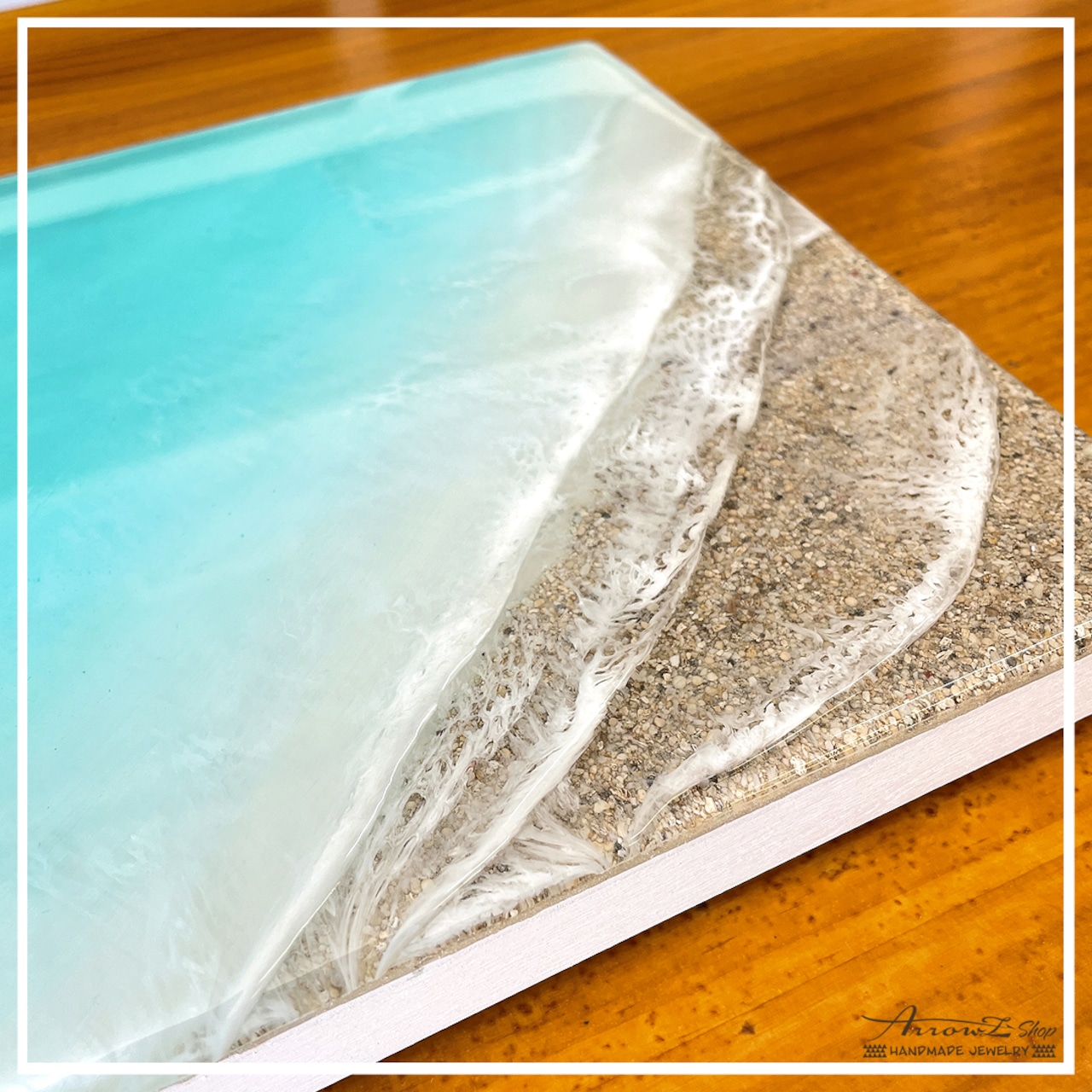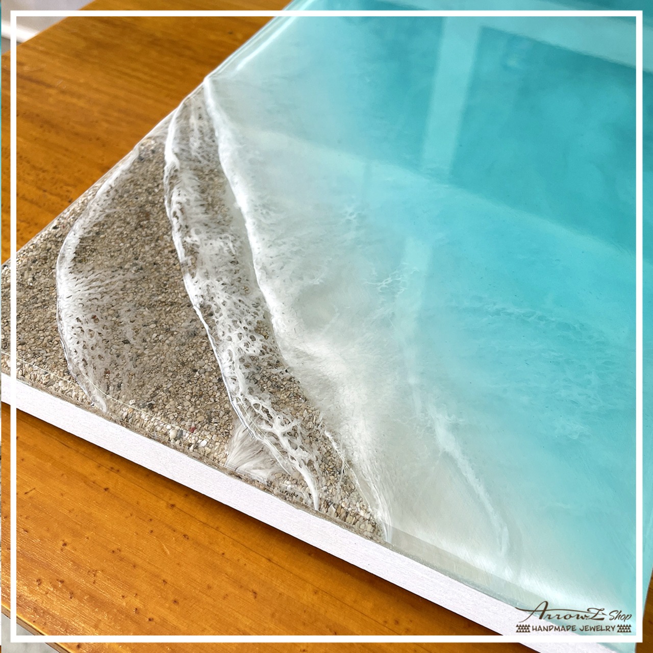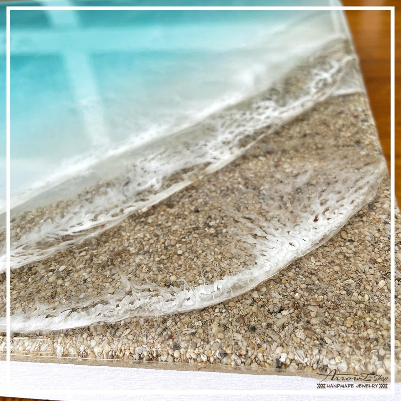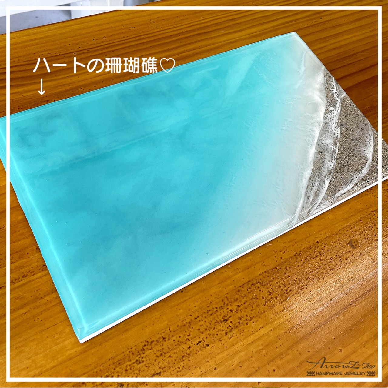 【P-10】レジンアート サンゴ礁波アート 海アート オーシャンアート インテリアパネル (珊瑚砂入り)