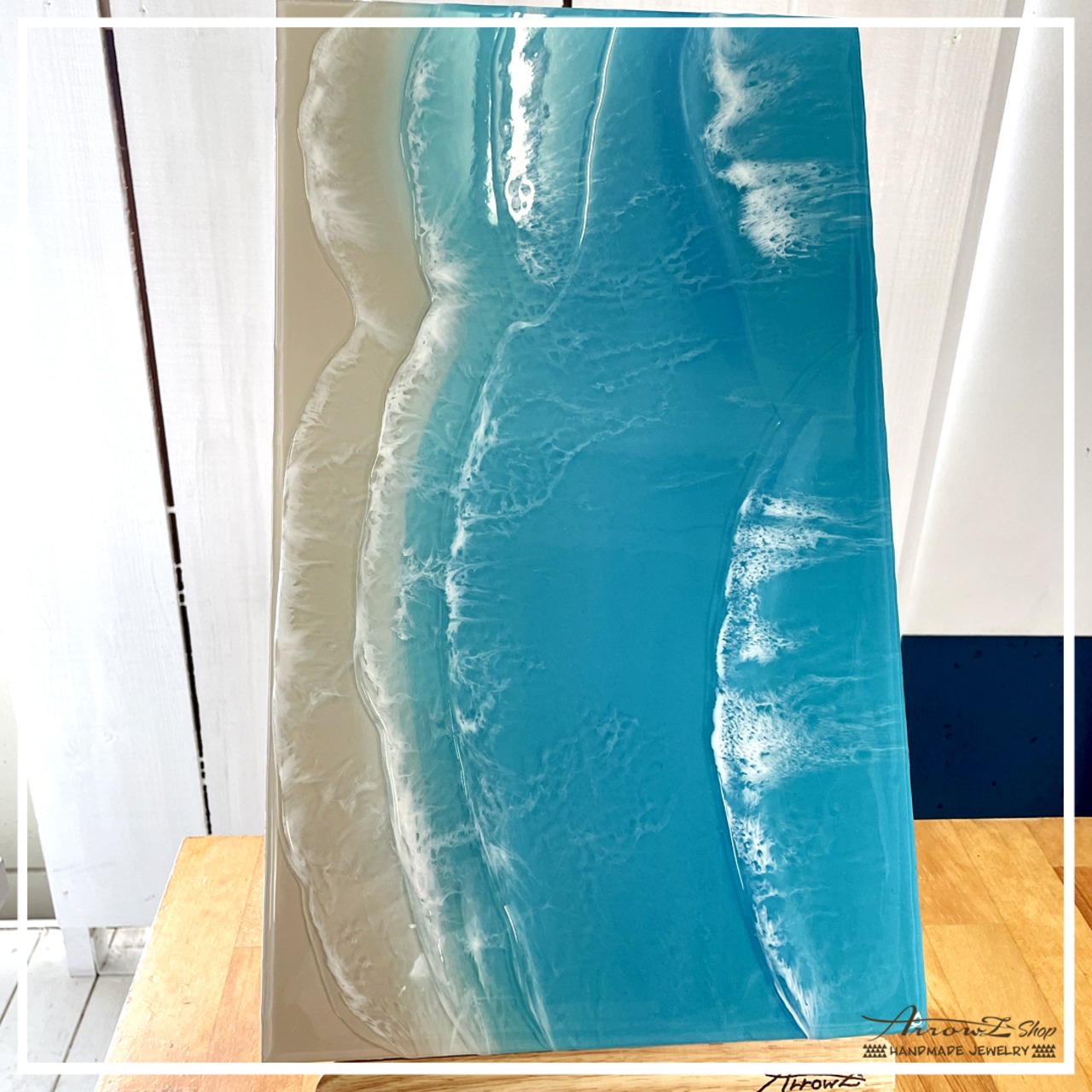 【P-16】波レジンアート 海アート WaikikiBeach インテリアパネル