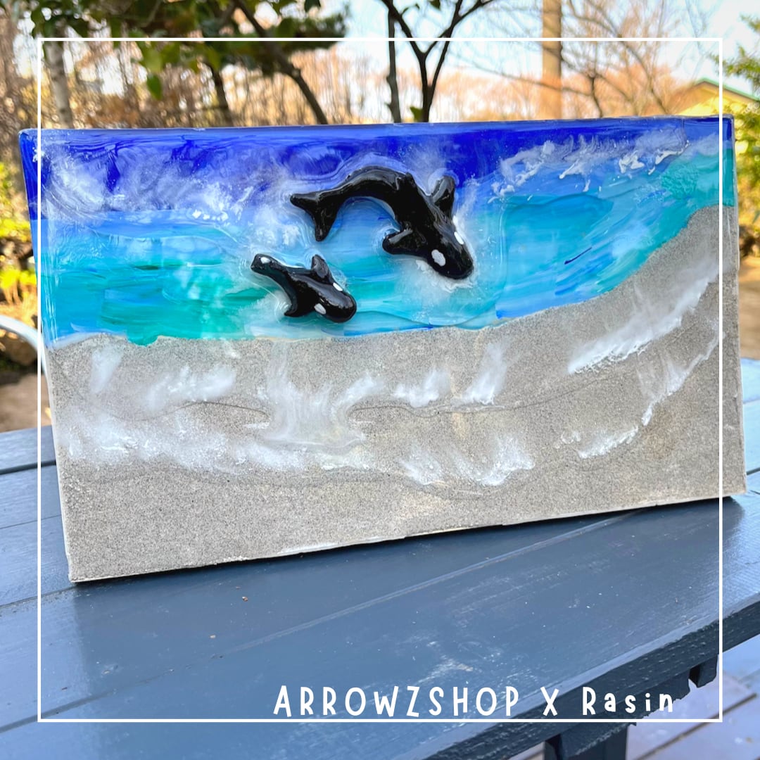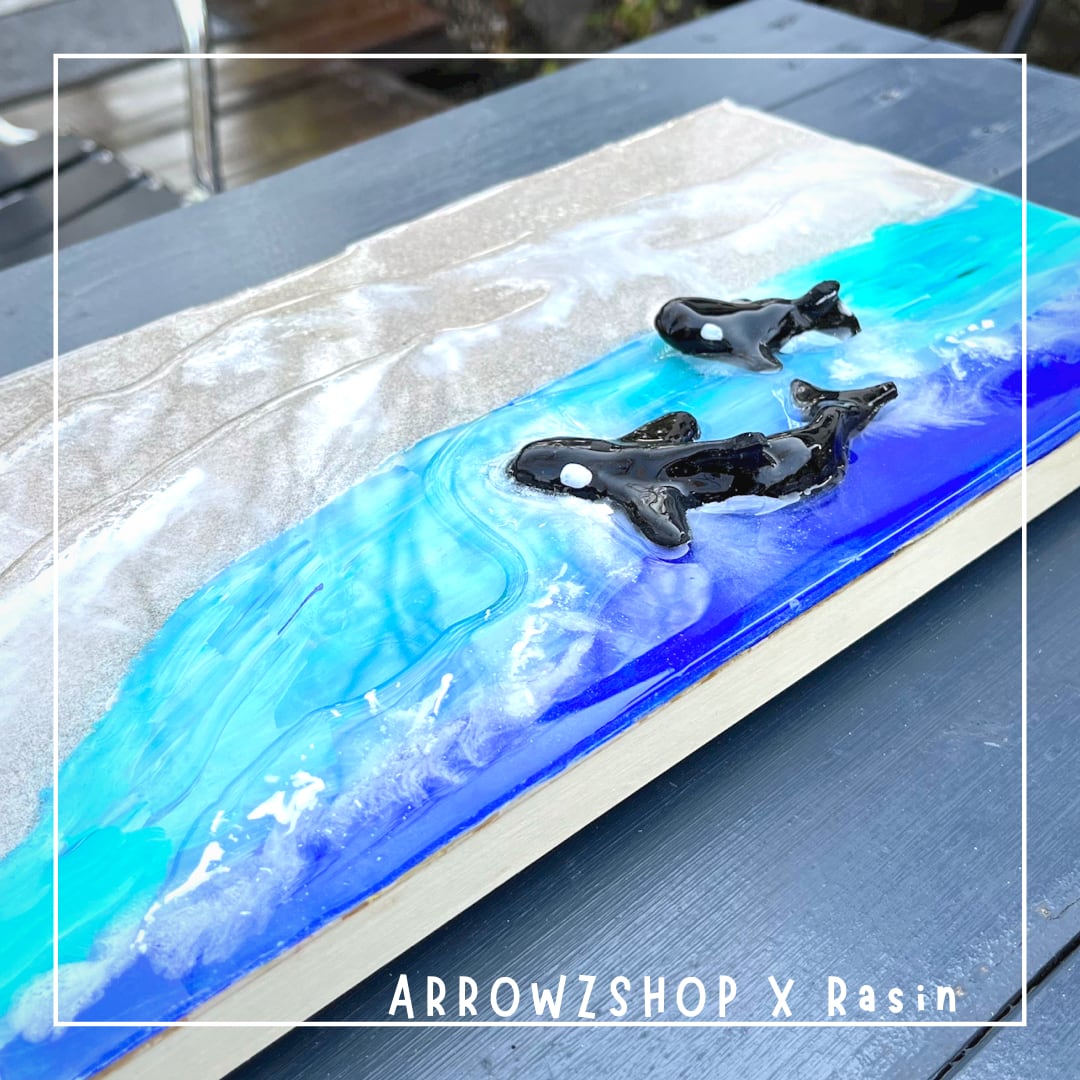 【kn03】レジンアート シャチの親子 海レジンアート 海アート シャチ パネルアート 立体アート 立体海アート