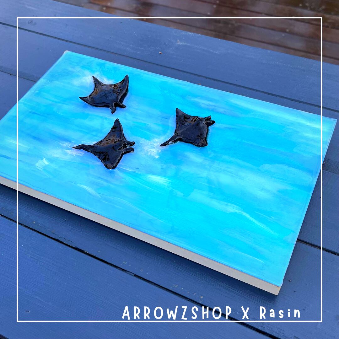 【kn05】レジンアート マンタ 海アート 海レジンアート インテリアパネル 立体アート