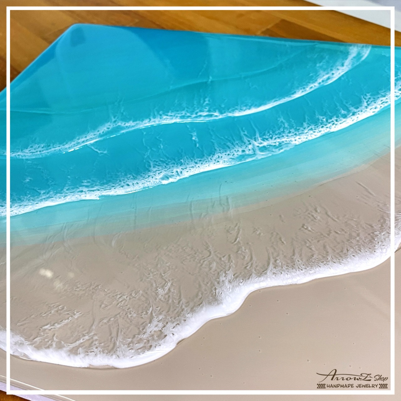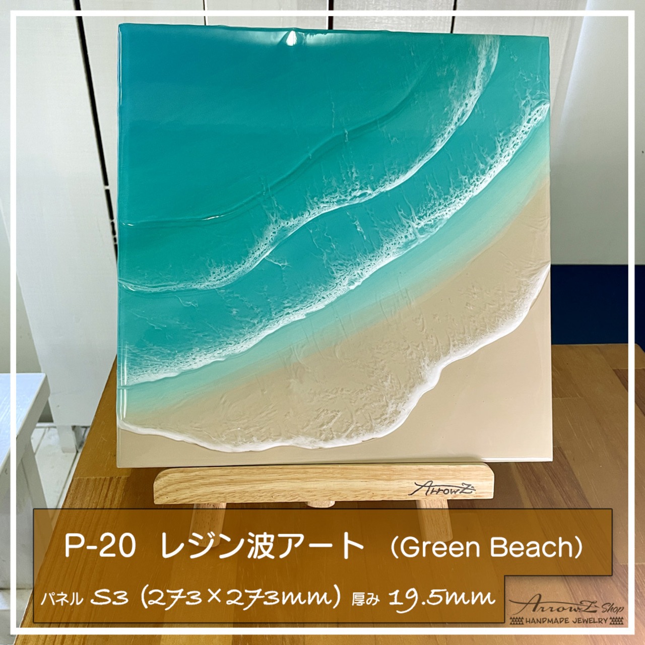 【P-20】波レジンアート 海アート GreenBeach インテリアパネル