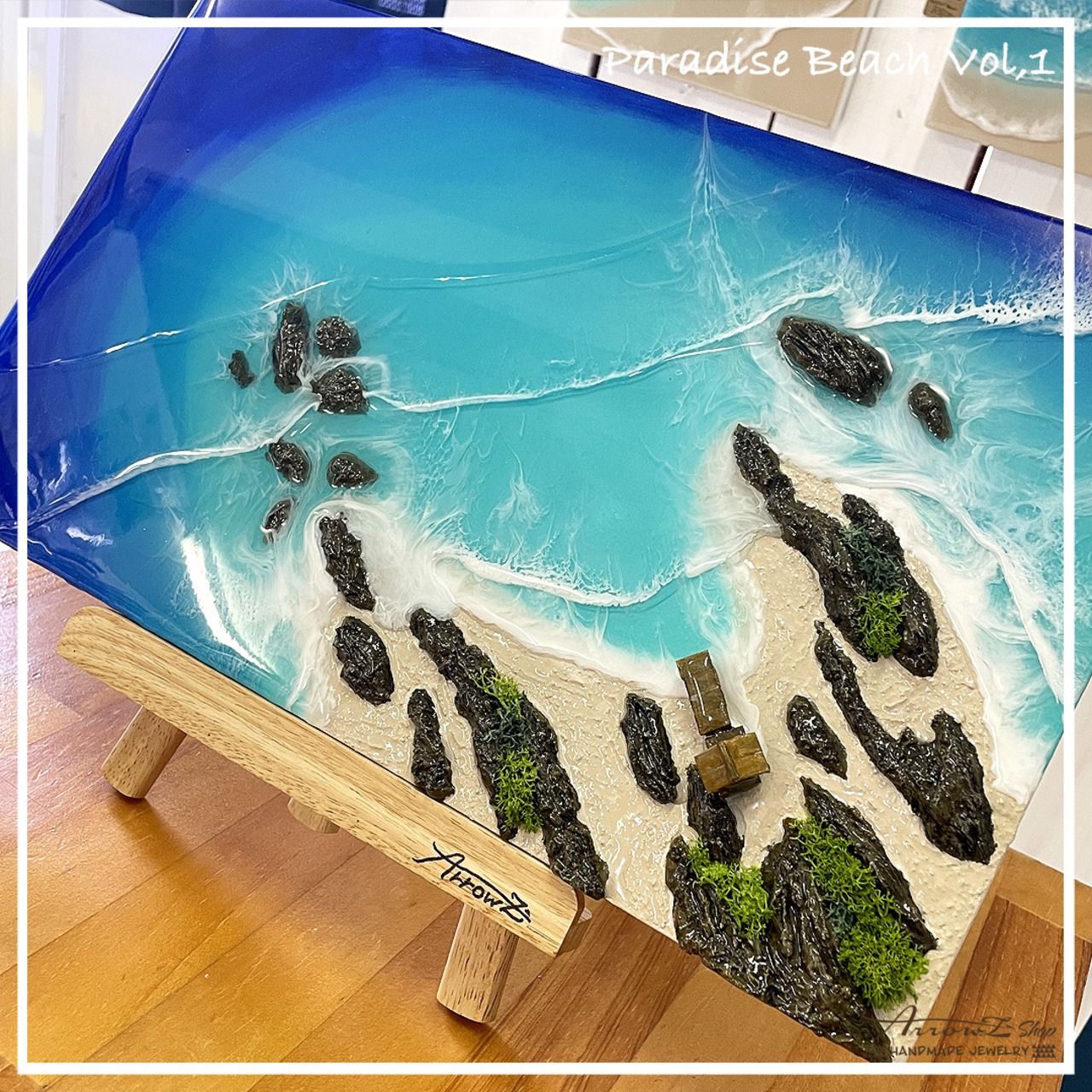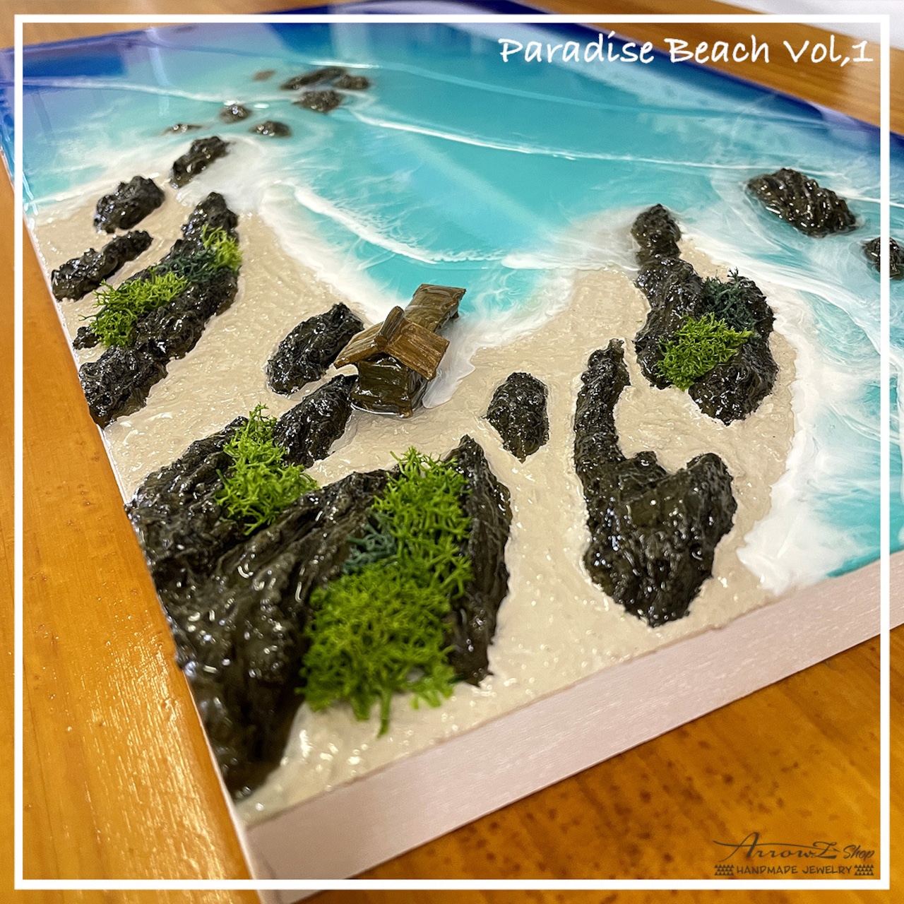 【P-19】レジン海アート(ParadiseBeach)波アート オーシャンアート 立体インテリアパネル