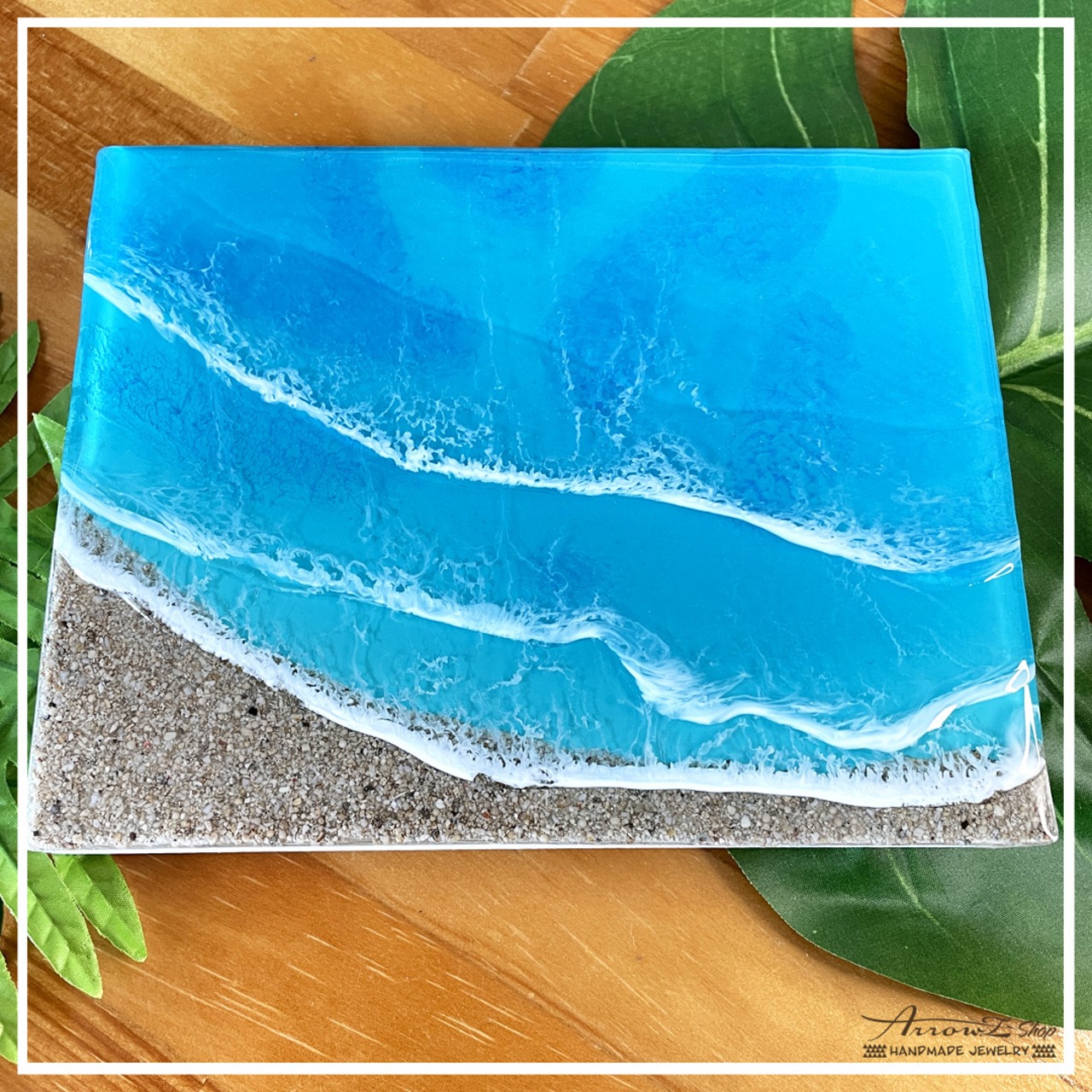 【P-22】波レジンアート 海アート Blue珊瑚礁/珊瑚砂入 インテリアパネル