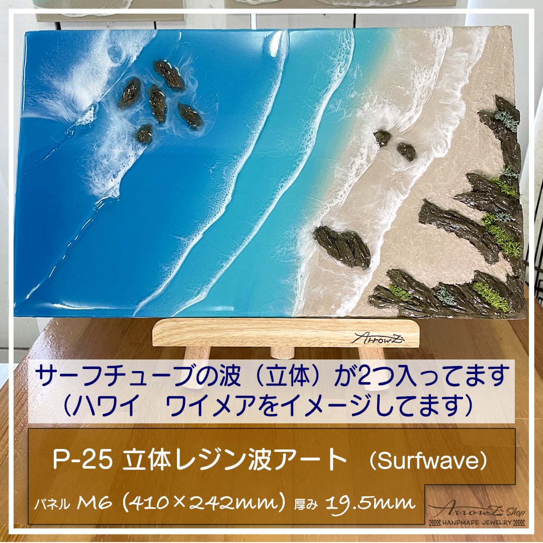 【P-25】立体レジン海アート(surfwave)波アート 立体インテリアパネル(ハワイワイメア)