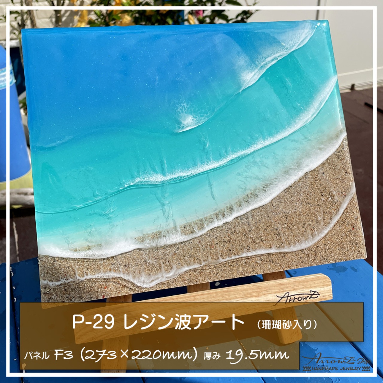 【P-29】波レジンアート 海アート インテリアパネル(珊瑚砂入り)