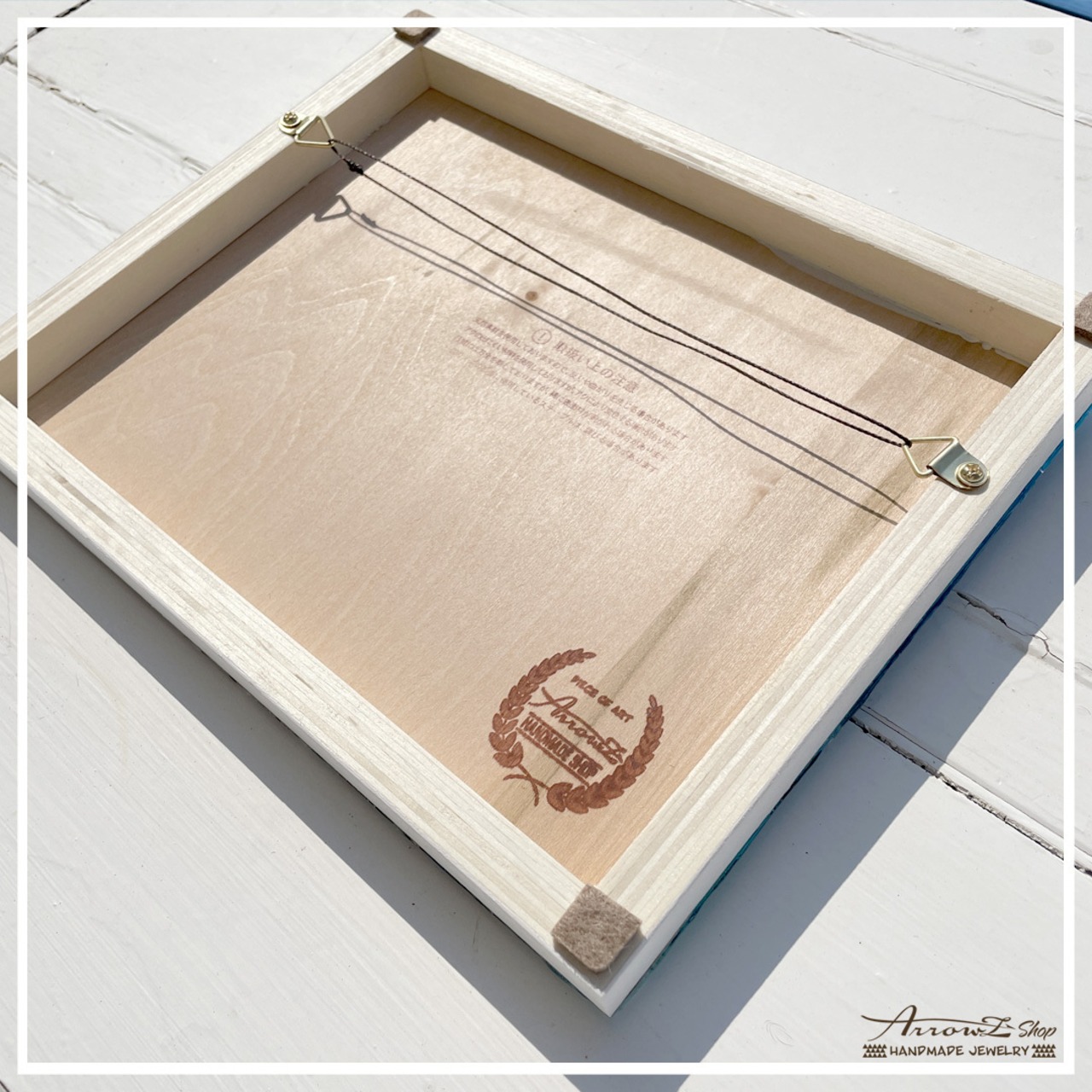 ▼アートパネル裏側には、フックと紐をおつけしておりますので壁等に引っ掛けて頂くと、簡単に飾れます。