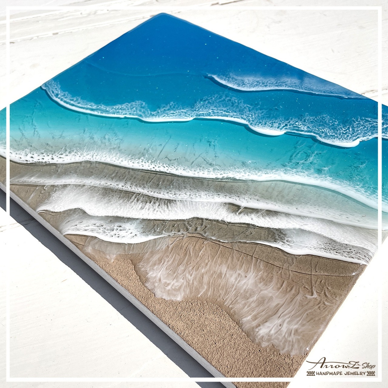 【P-32】波レジンアート 海アート インテリアパネル(ラメ入り)