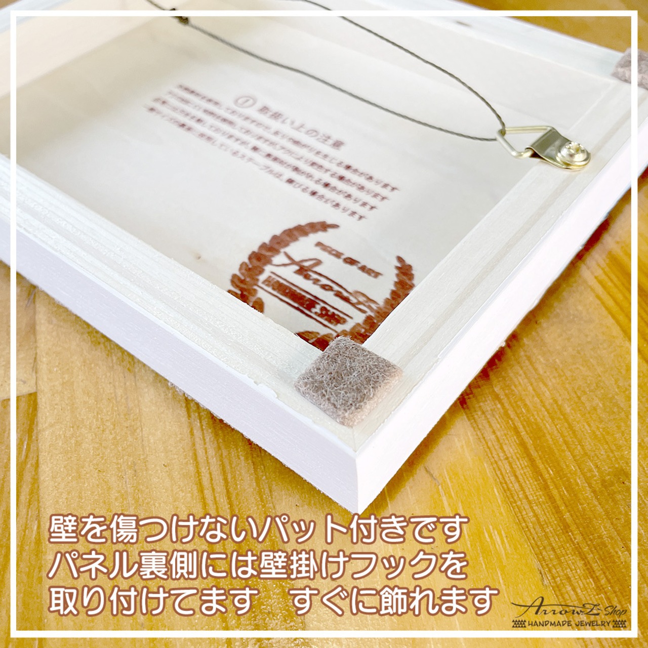 ▼アートパネル裏側には、フックと紐をおつけしておりますので壁等に引っ掛けて頂くと、簡単に飾れます。