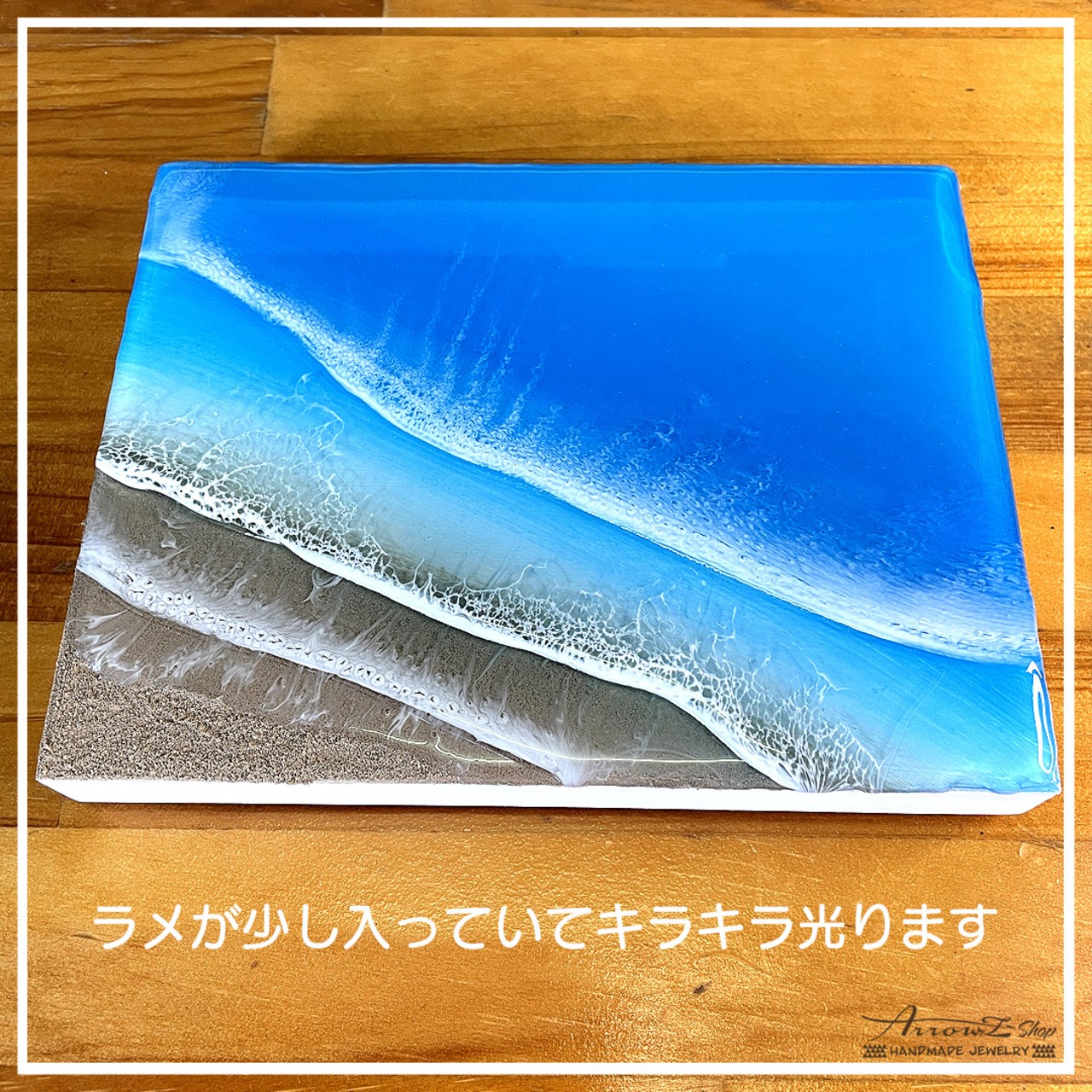 【P-37】波レジンアート 海アート インテリアパネル(ラメ入り)