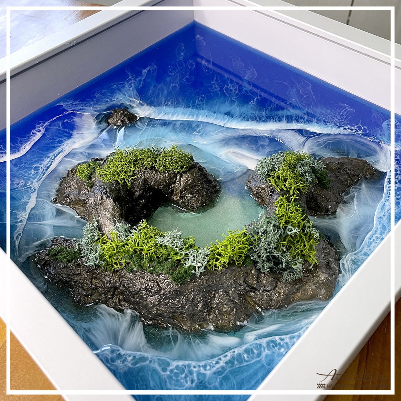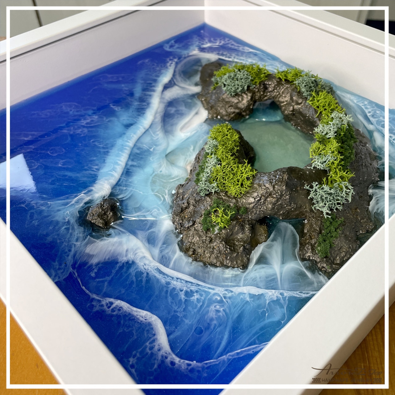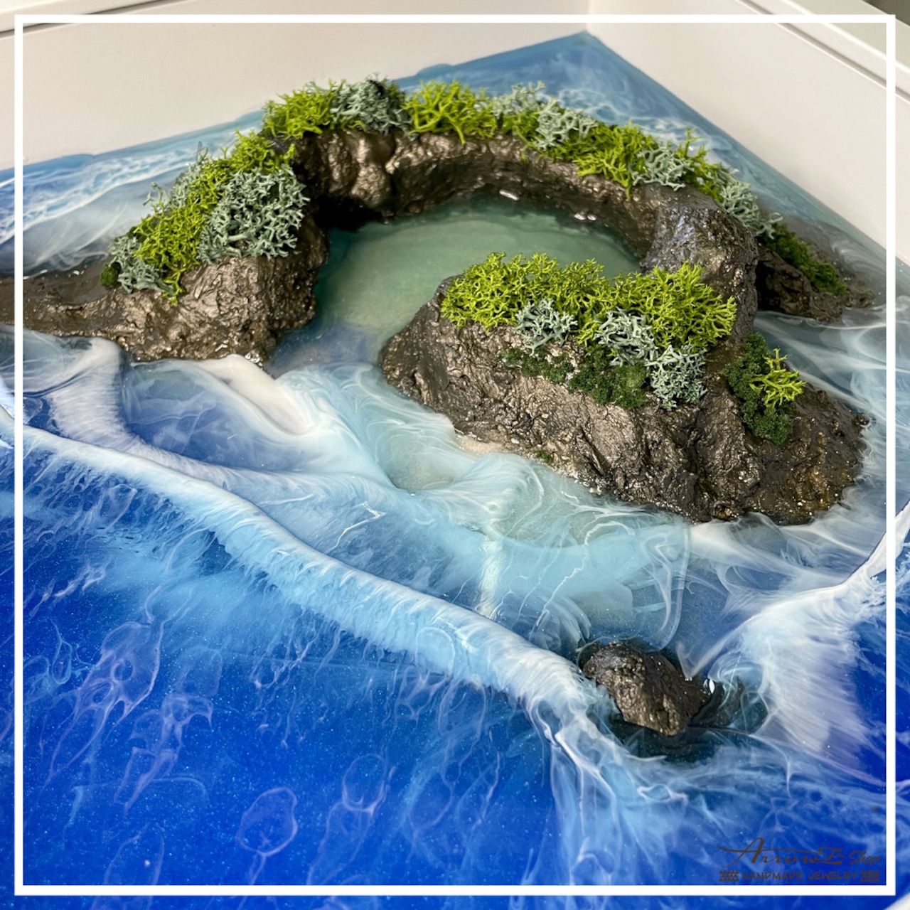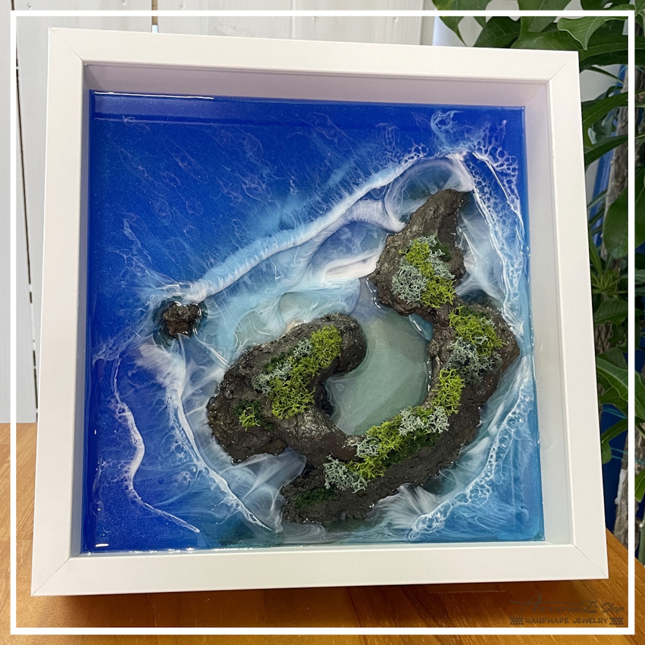 【Po-01】立体海レジンアート オーシャンアート インテリア自立パネル(ラメ入り)