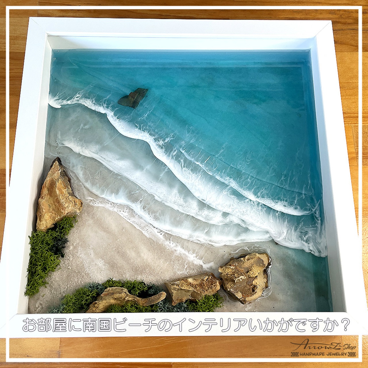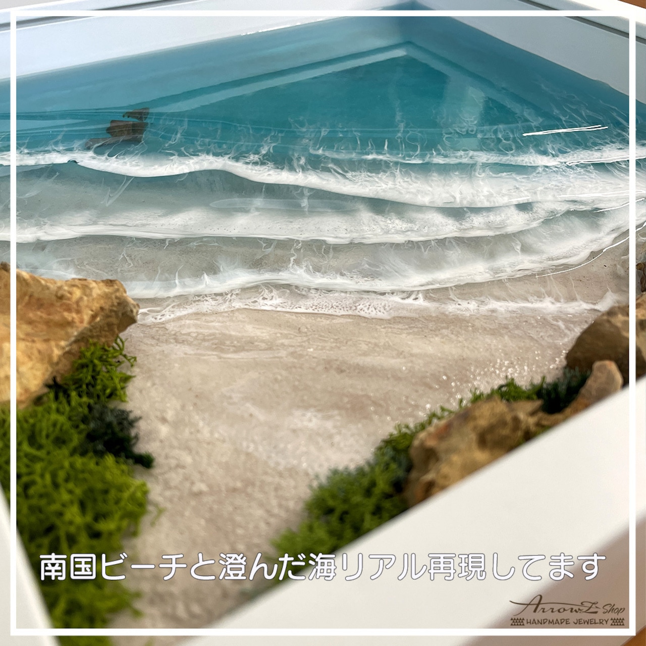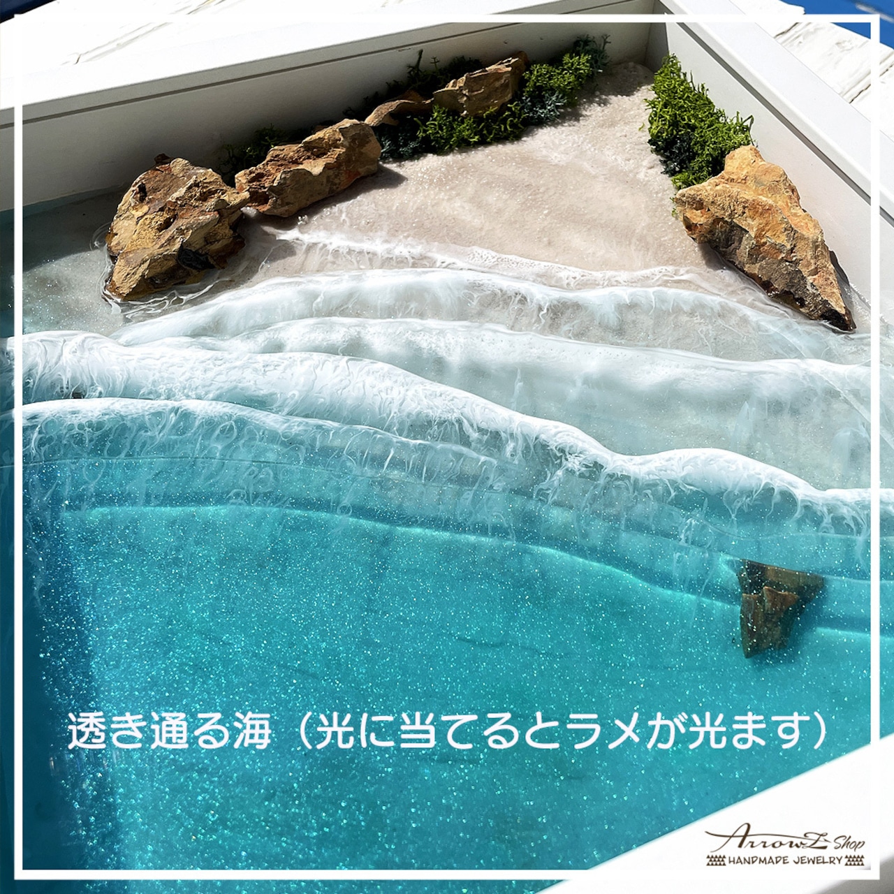 【Po-02】立体海レジンアート オーシャンアート インテリア自立型パネル(ラメ入り)