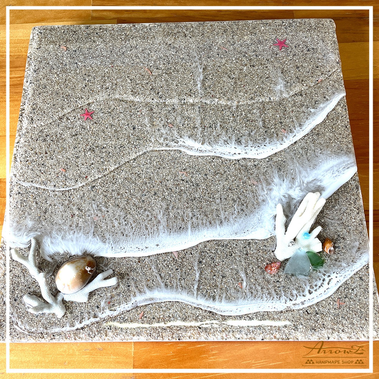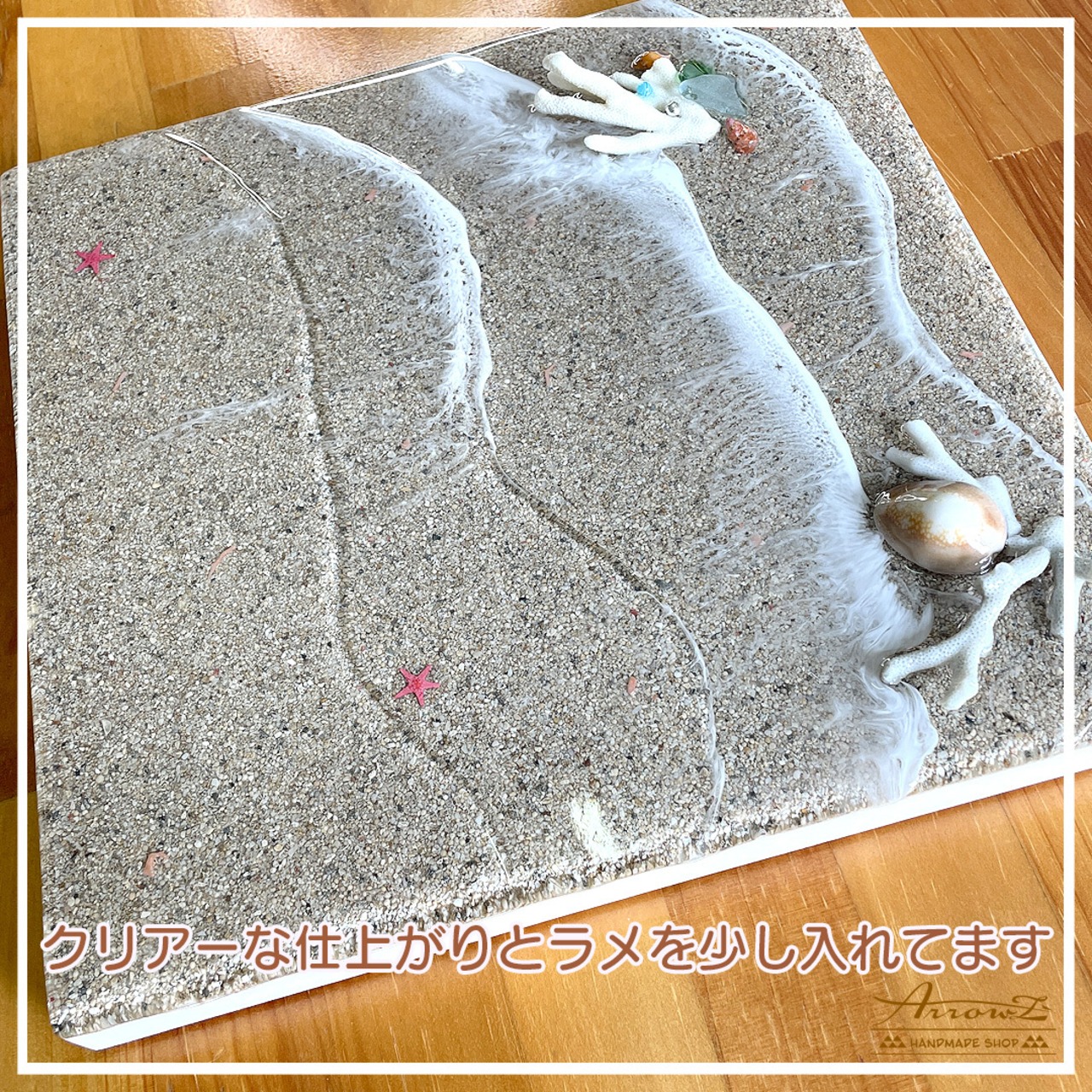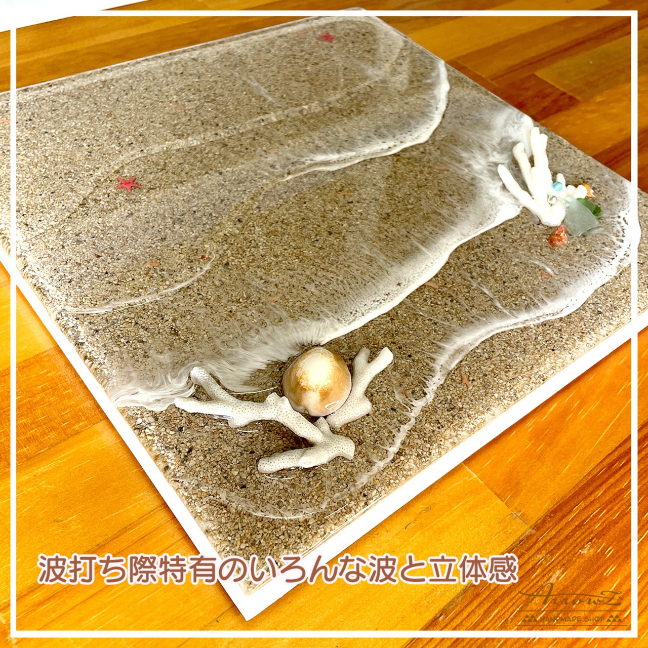 【P-44】波レジンアート 海アート インテリアパネル(ラメ入り) ビーチコミング