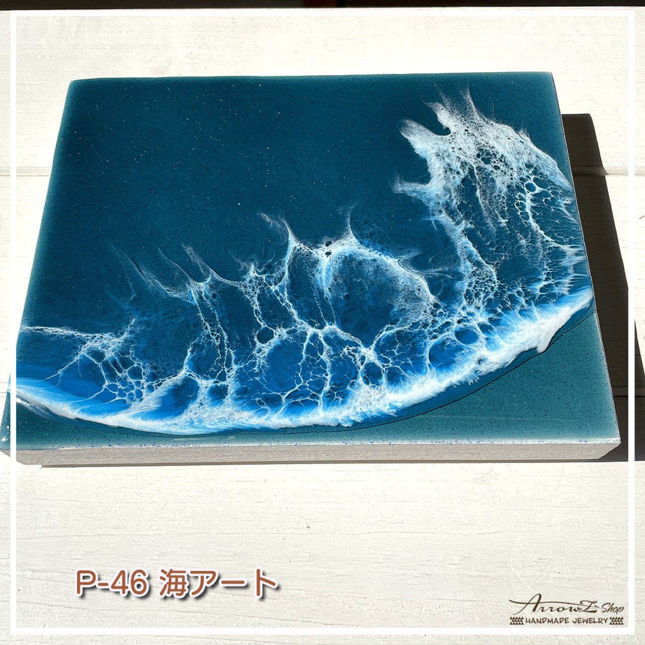 【P-46】海レジンアート(Blue I)インテリアパネル(ラメ入り)