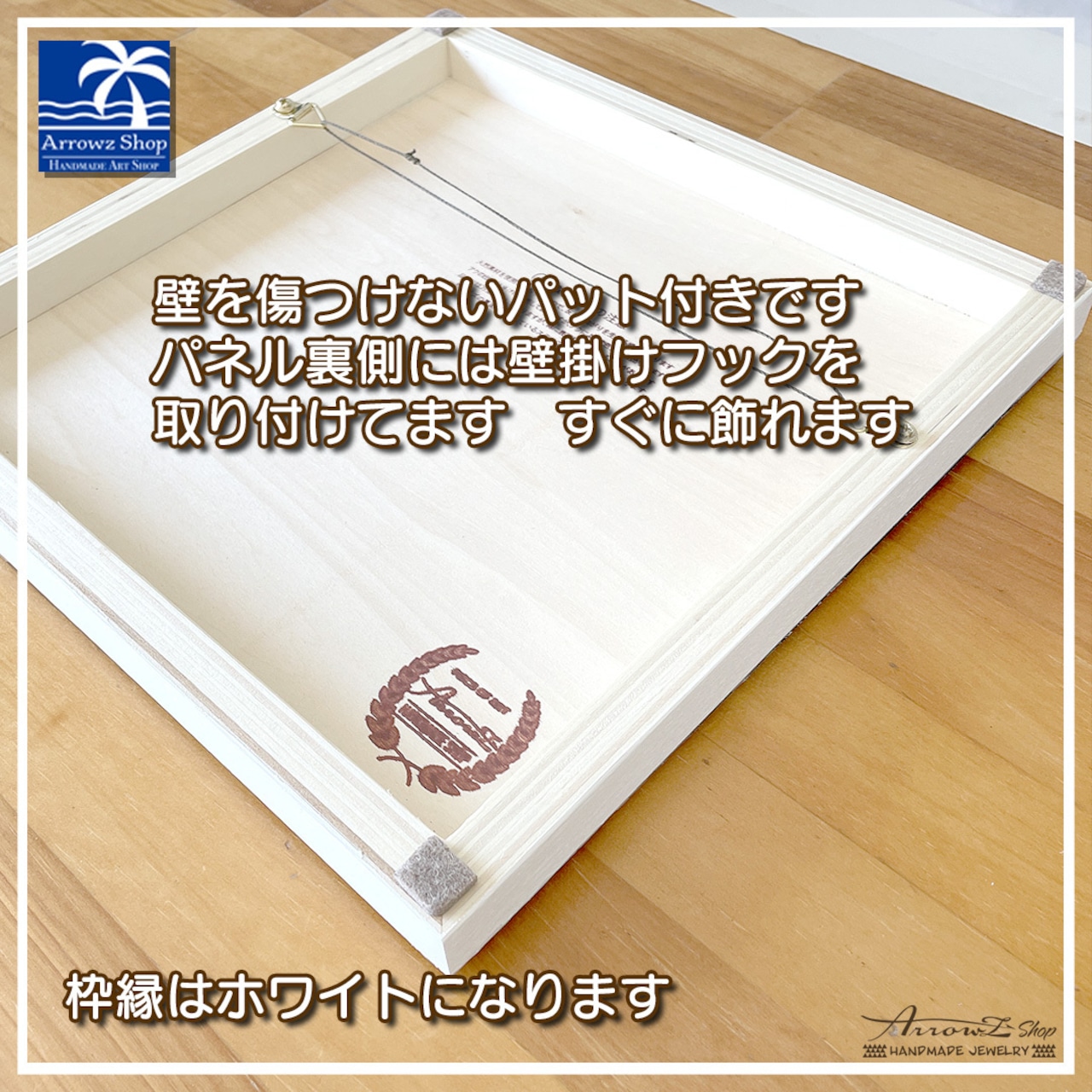 ▼アートパネル裏側には、フックと紐をおつけしておりますので壁等に引っ掛けて頂くと、簡単に飾れます。