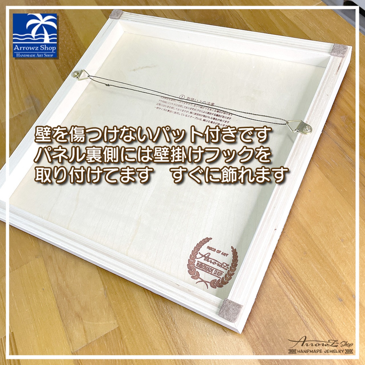 ▼アートパネル裏側には、フックと紐をおつけしておりますので壁等に引っ掛けて頂くと、簡単に飾れます。