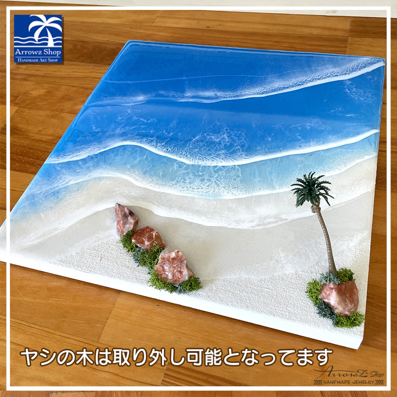 【P-50】立体 海Oceanアート(南国ビーチ)ヤシの木取り外し可能タイプ