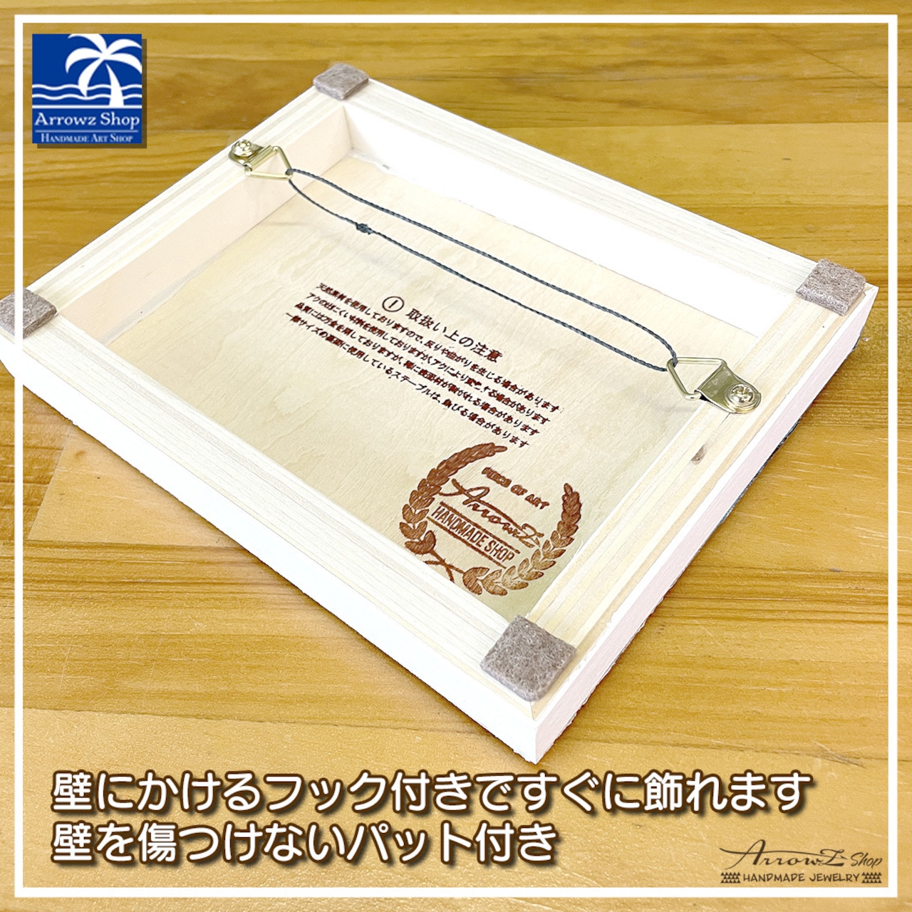 ▼アートパネル裏側には、フックと紐をおつけしておりますので壁等に引っ掛けて頂くと、簡単に飾れます。