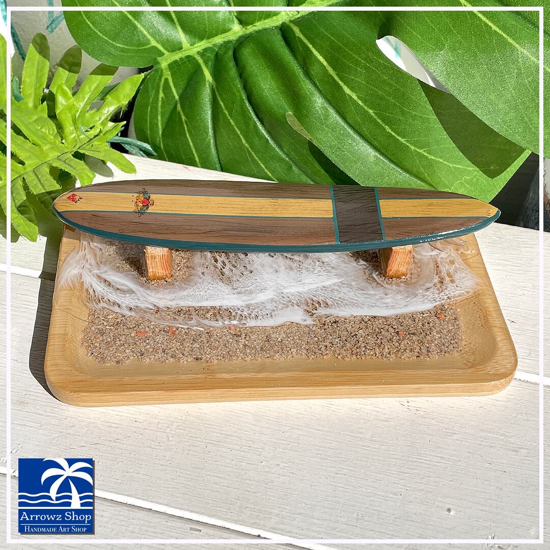 こちらは実際のロングボードをミニチュアにハンドメイドした商品です
