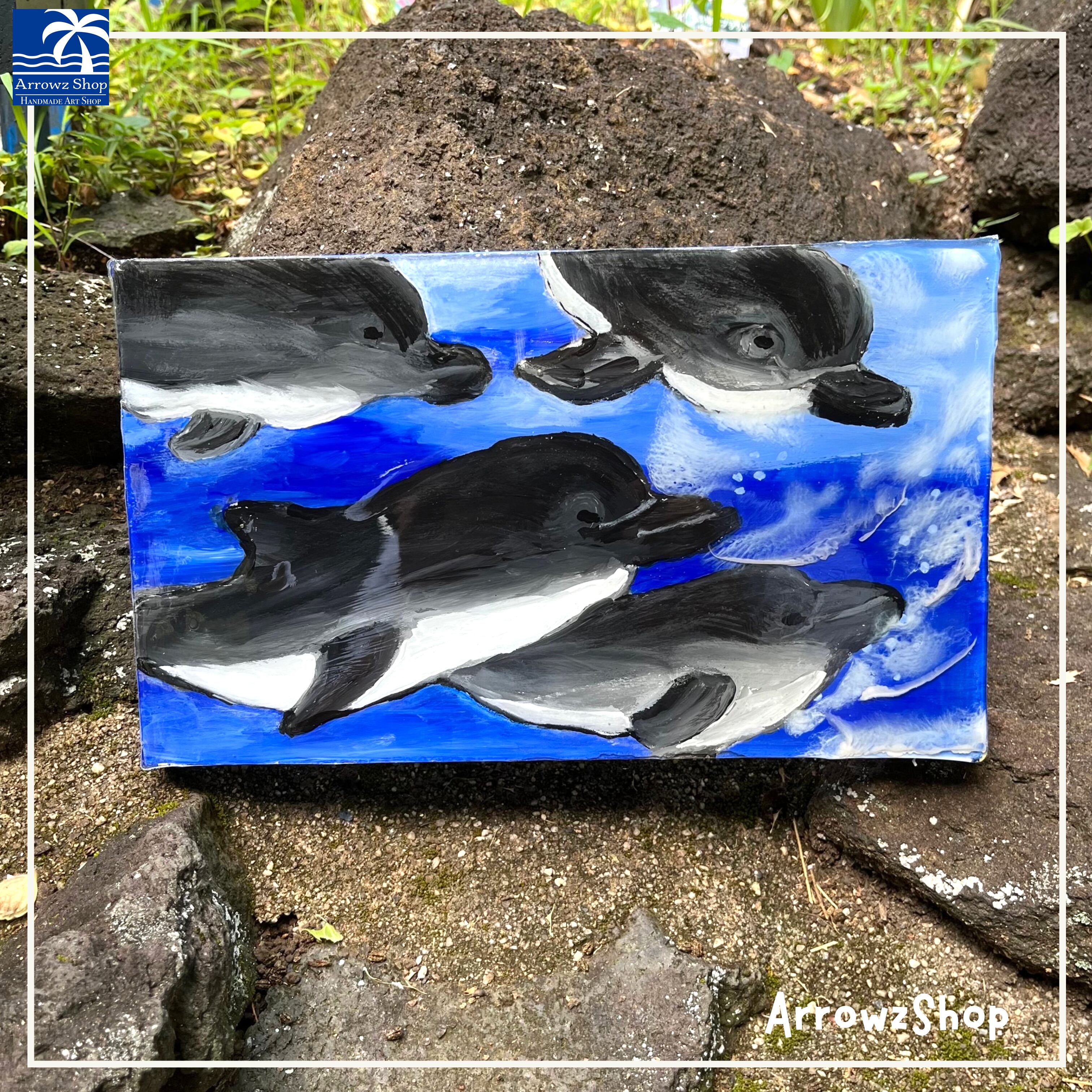 こちらは優雅に泳いでいるイルカの親子を描いたレジンアートです