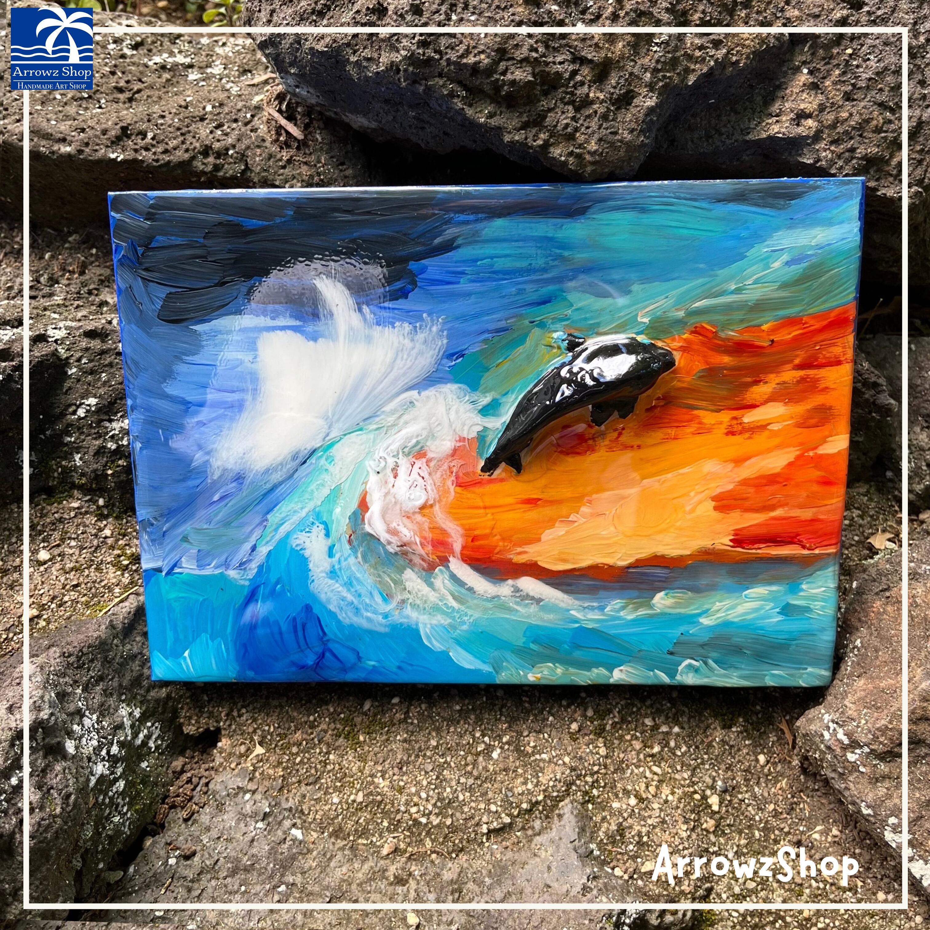 軽量石粉粘土でイルカを成形した後、色を付けてエポキシ樹脂にて仕上げてあります